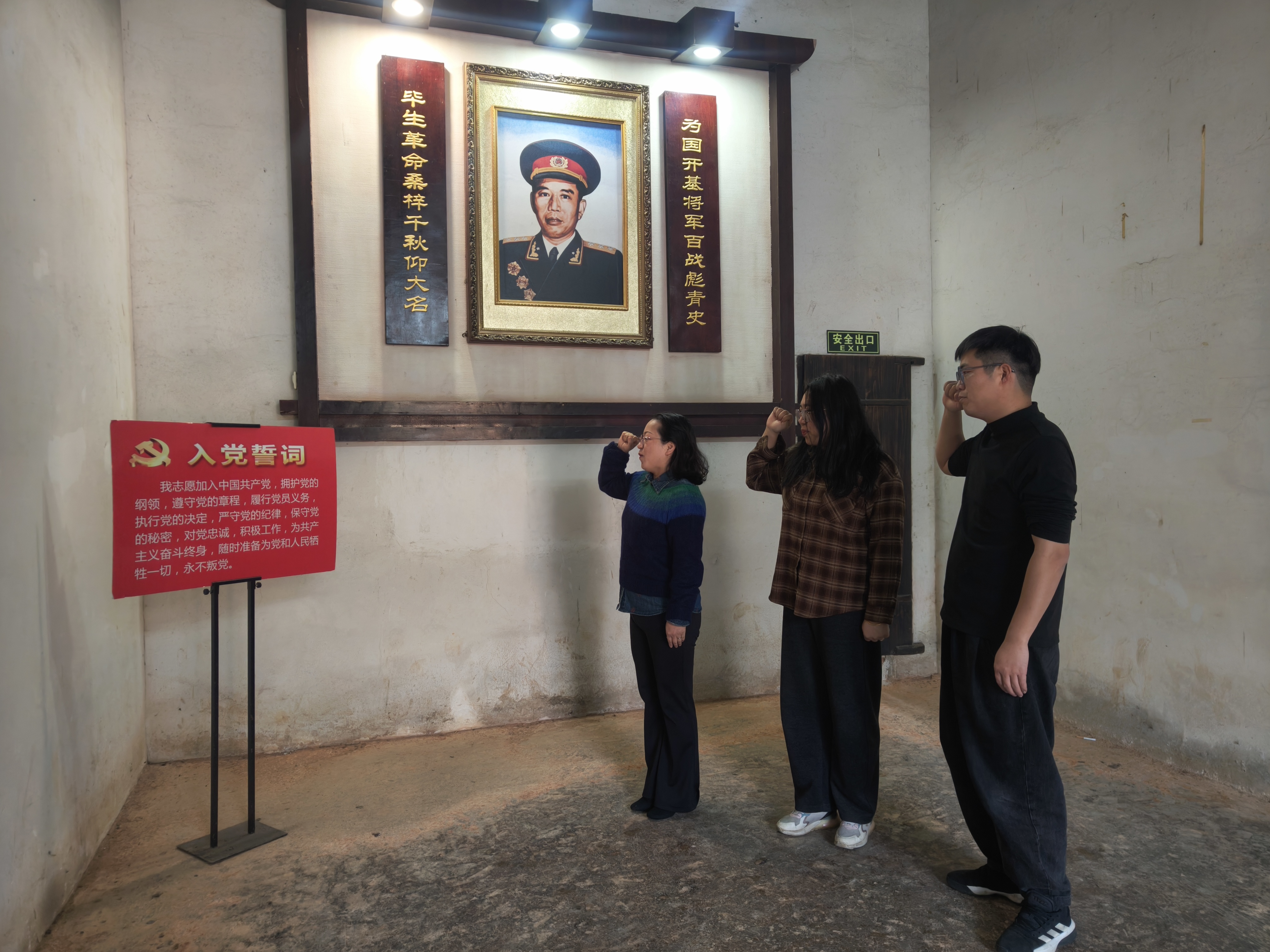 参观学习结束后,在王震同志生平事迹展的照片墙前,党支部举行了庄严的重温入党誓词仪式。全体党员郑重举起右拳,用铿锵有力的声音重温入党誓词:“我志愿加入中国共产党,拥护党的纲领,遵守党的章程……”铮铮誓言,字字千钧,在故居内回荡,表达了同志们对党的无限忠诚和为共产主义事业奋斗终身的坚定决心。在革命先辈的见证下重温誓言,使大家进一步强化了党员身份意识,铭记了初心使命,汲取了矢志不渝、接续奋斗的精神力量。
